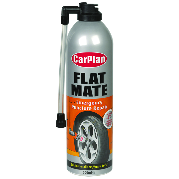 CarPlan Flat Mate Instant Puncture Repair kit is for use in an emergency which re-inflates and seals tubeless tyres. Your best friend when stranded with a flat tyre in thedark, on the motorway or in the rain.